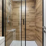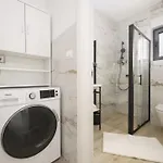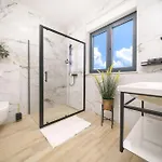 Die Villa Tria Quercus With Rooftop Pool verfügt über ein Badezimmer mit einer behindertengerechten Dusche und einer getrennten Toilette. Ein Haartrockner, eine Duschhaube und Badelaken werden auch angeboten.