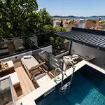 Die 2-Zimmer- Villa Tria Quercus With Rooftop Pool Vodice liegt 9 Minuten Gehweg vom Aquarium und Museum der maritimen Tradition entfernt und verfügt über eine Terrasse mit Blick auf den Garten. Die Villa mit Blick auf die Stadt lädt Gäste ein, den Strand Bristak zu besuchen (circa 2 km von der Unterkunft entfernt).